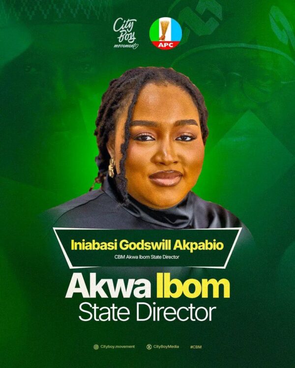 The statement reads: “Introducing the Akwa Ibom State Director of the City Boy Movement. Iniabasi Godswill Akpabio. With her at the helm in Akwa Ibom, the movement is set for unprecedented impact.”